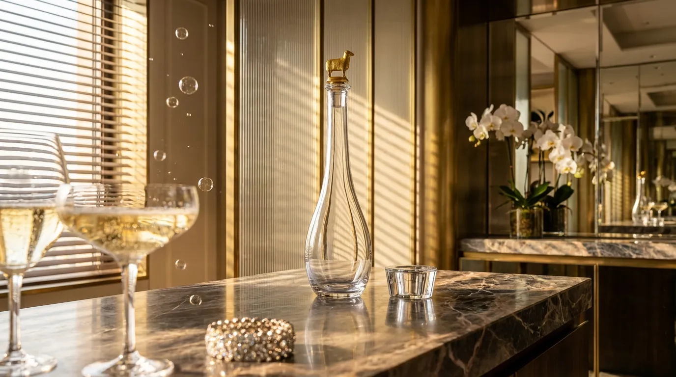 Extremely Rare Crystal Decanter with Gilt Bronze Sheep Stopper